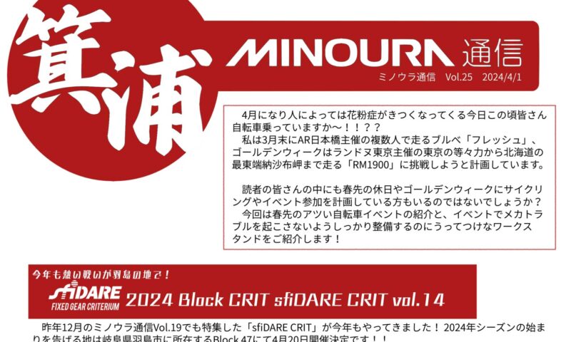 ミノウラ通信 ミノウラ通信vol.25 2024.11.6 今年もやってきました! 「sfiDARE CRIT」第一戦目!!! コースについてのまとめと、レース前のメンテナンスに便利な 「W-3100」を紹介します。 ミノウラ通信 Vol.25 (2024年4月1日) Post Share 投稿者: Shiho ミノウラ通信 ミノウラ通信vol.24 前の記事 ミノウラ通信vol.26 次の記事
