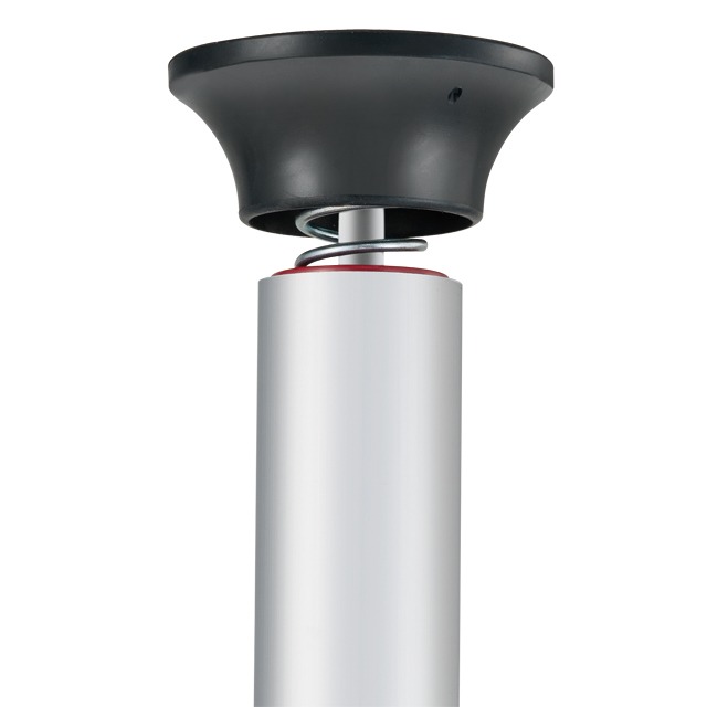 - 天井側ゴムカップには、適切に設置されているかどうかがわかる赤色インジケータが設けられています。使用中、赤色インジケータが見えてきたらすぐに支柱の長さを調整し直すか、天井の強度をご確認ください。