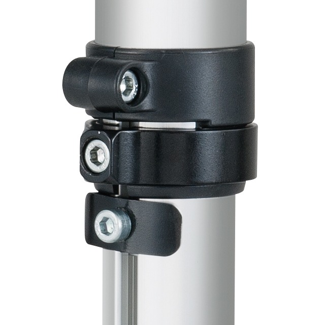 - ジョイント部のボルト固定に加え専用ストッパー金具で固定する二重ロック構造で、最終設置後のポール収縮による転倒を予防します。