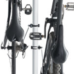 - 自転車はその部品配置上、前輪で吊り下げると勝手にバランスを取ろうとして後輪が後方に移動しようとします。この後輪を手前に引っ張って自転車を垂直にし省スペース化するのが後輪フックの役目です。